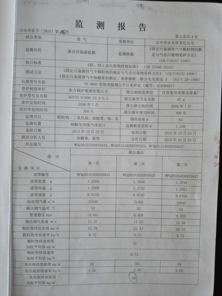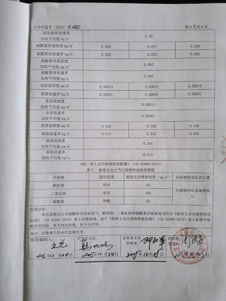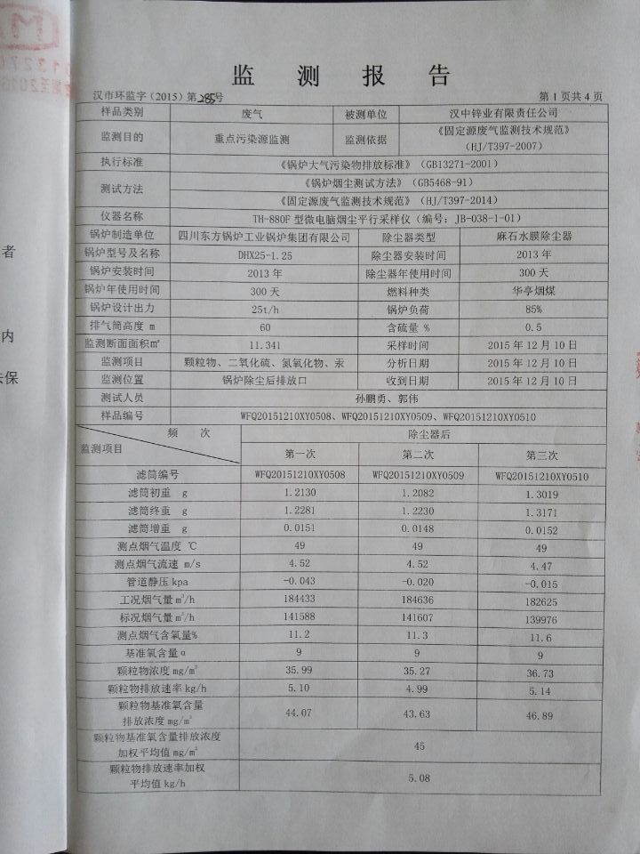 2015年4季度水汽監測報告