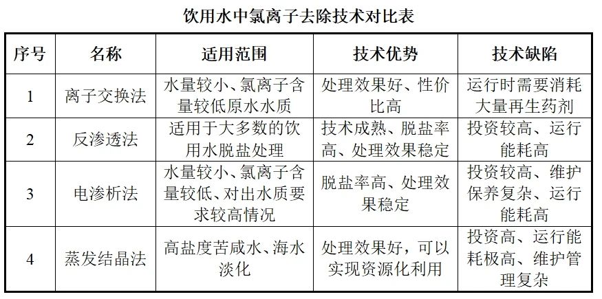 綜上所述,在選擇飲用水中氯離子去除技術時,需要綜合考慮水質標準、水源特性、技術性能、成本效益等因素,并遵循安全性、高效性、經濟性、穩定性和可擴展性等原則。