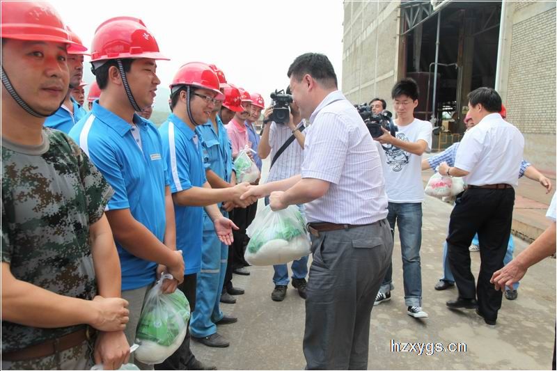在生產現場,魏副市長發表了簡短的講話。他首先代表市委、市政府向炎炎夏日仍然奮戰在生產一線的鋅業公司職工表示親切的慰問和衷心的感謝。他指出,漢中鋅業公司廣大職工在酷暑中依然堅守崗位,奮戰在生產第一線,為全市經濟發展作出了貢獻。將這些防暑降溫物品發放到大家手中,一是希望大家能夠在崗位中體會到一點清涼,更好地立足崗位,做好本職工作;二是提醒大家一定要做到安全生產,在做好防暑降溫工作的同時,堅決杜絕安全隱患發生;三是希望公司繼續加快發展,爭取做到企業有發展,職工得實惠,為漢中地方經濟發展做出新的更大的貢獻。