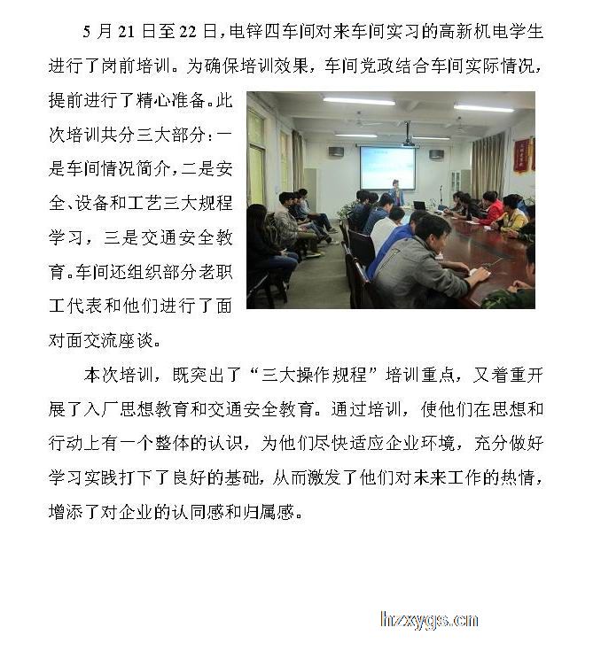 電鋅四車間對高新機電實習生進行崗前培訓