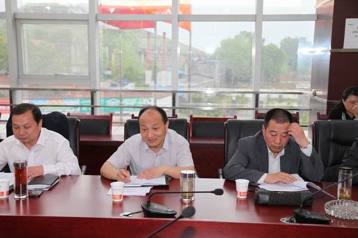 2012年4月23日下午,勉縣縣委書記馬大勇、縣委副書記劉保平、副縣長毛建平一行,在縣委辦、縣發(fā)改局、經(jīng)貿(mào)局、環(huán)保局、國土局及鎮(zhèn)川鎮(zhèn)領(lǐng)導(dǎo)的陪同下,來公司調(diào)研。公司總經(jīng)理劉朝斌,黨委書記高文杰,副總經(jīng)理張曉華、張健康、侯小強(qiáng)、王瑜,副總工程師夏誠業(yè)等與馬大勇一行進(jìn)行了座談。